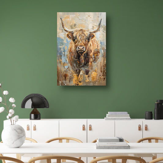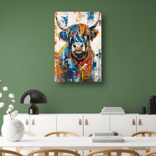 Kleurrijke abstracte schilderij van Schotse hooglander canvas met baklijst