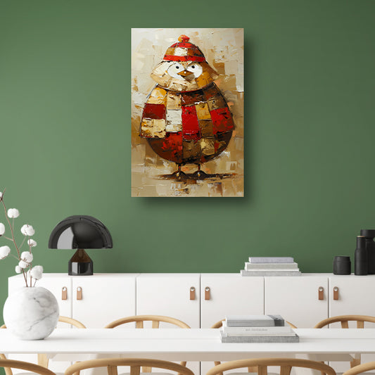 Kleurrijke abstracte vogel met hoed schilderij canvas met baklijst