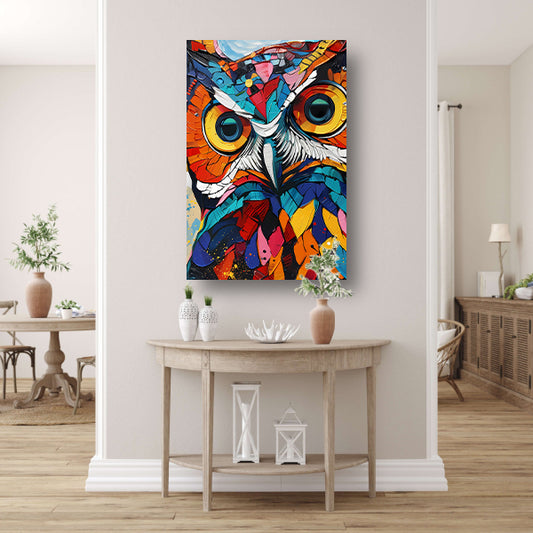 Kleurrijke abstracte uil in Popart-stijl canvas met baklijst