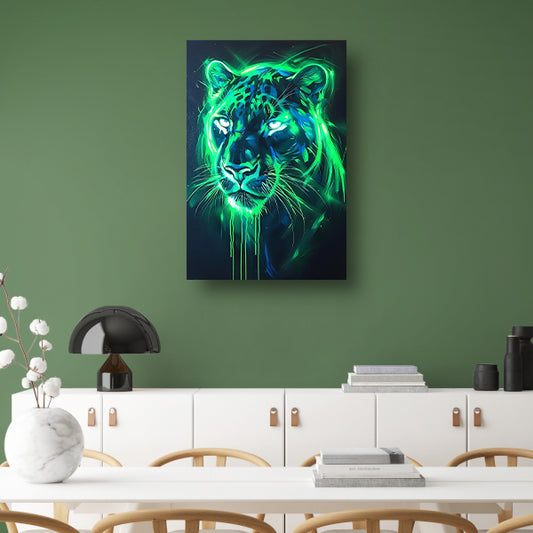 Fluorescerende panter in abstracte kleuren canvas met baklijst