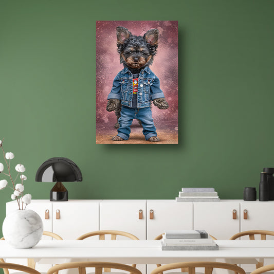 Hyperrealistische Yorkshire Terriër in spijkerjas poster