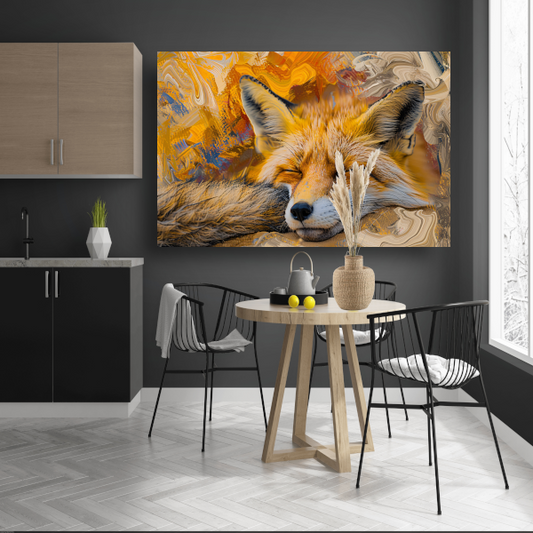 Slapende vos in herfstbos canvas met baklijst