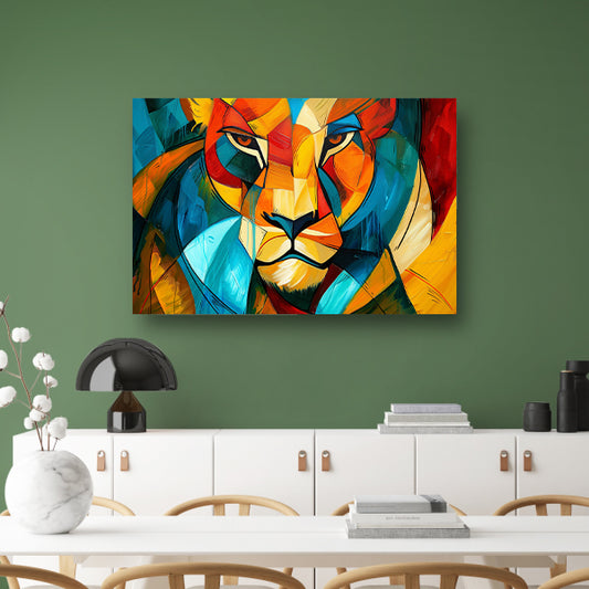 Abstracte kleurrijke leeuw in kubistische stijl canvas met baklijst