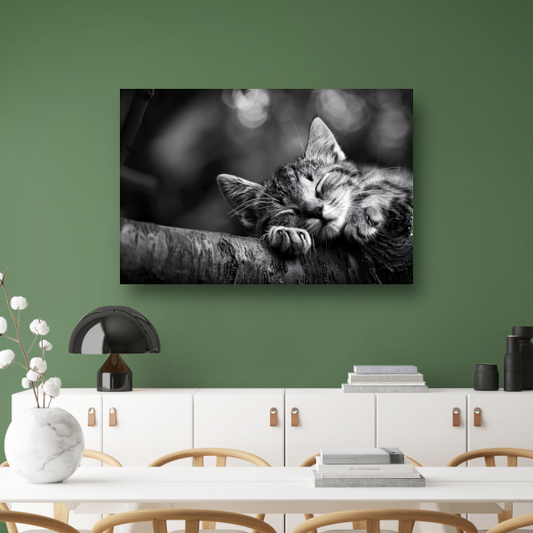 Slapende kitten op boomtak canvas met baklijst