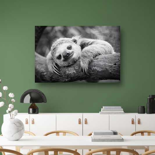 Slapende luiaard op tak canvas met baklijst