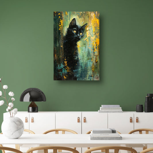 Elegante zwarte kat met dynamische achtergrond canvas met baklijst