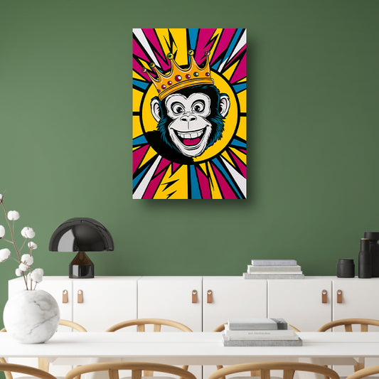 Vrolijke aap met kroon in popart stijl canvas met baklijst