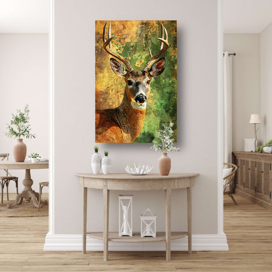 Dynamisch hertenportret met abstracte achtergrond canvas met baklijst