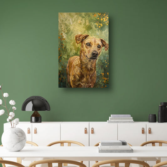 Elegante hond geschilderd in olieverf canvas met baklijst