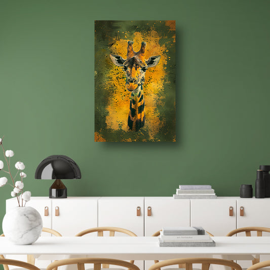 Abstract giraffe portret op rustieke achtergrond canvas met baklijst