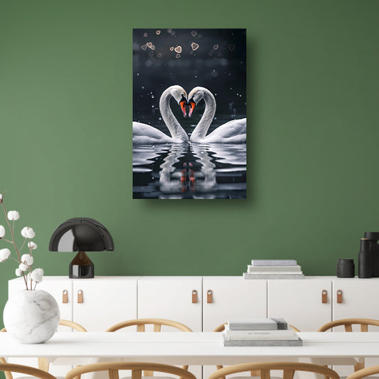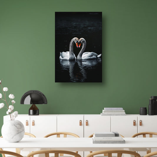 Twee zwanen vormen een hartvorm canvas met baklijst