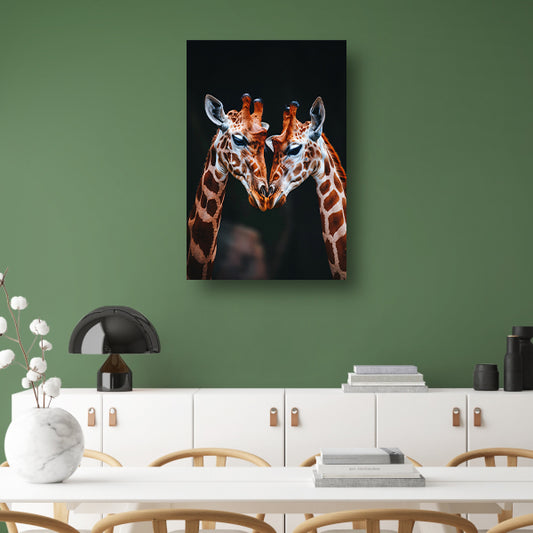 Twee giraffen tegen donkere achtergrond canvas met baklijst