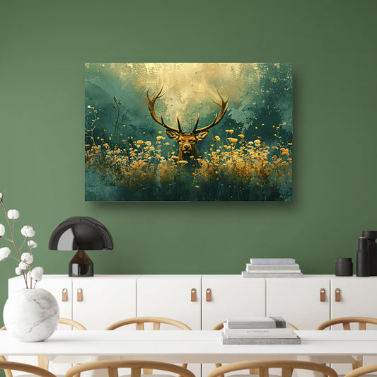 Majestueus hert in bloemenrijk veld canvas met baklijst