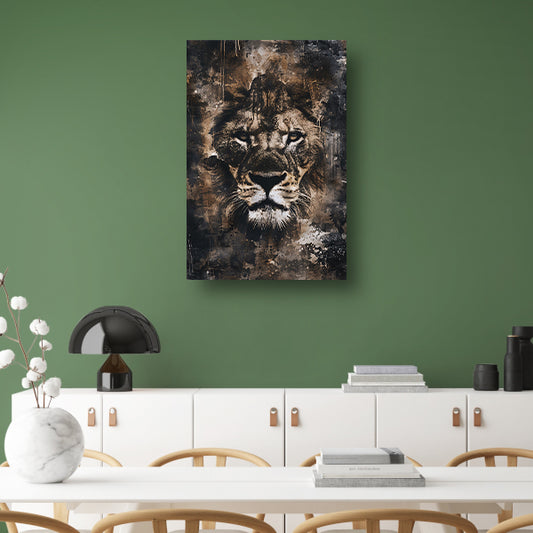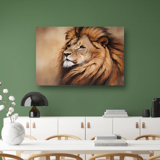 Rustiek leeuwenportret in sepia tinten canvas met baklijst