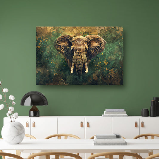 Mysterieus olifant portret met gouden accenten canvas met baklijst