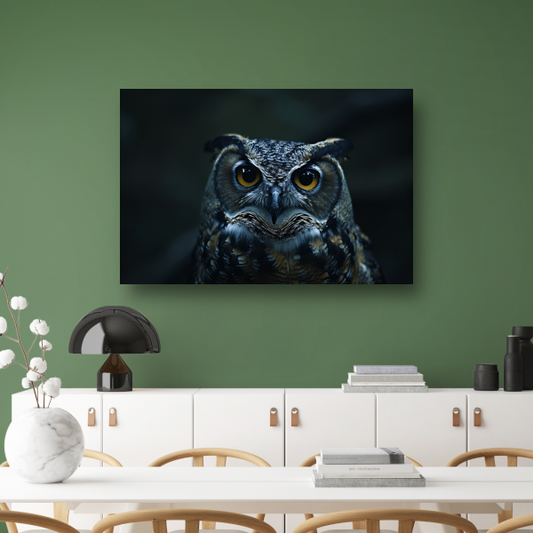 Nachtuil met doordringende gele ogen canvas met baklijst