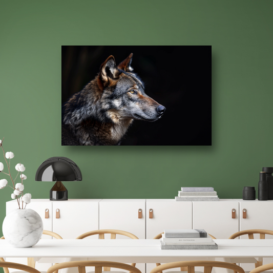 Intense Blik van een Wolf in Duisternis canvas met baklijst