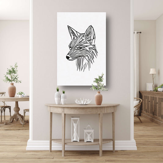 Abstracte Zwart-Witte Vos Lijntekening canvas met baklijst