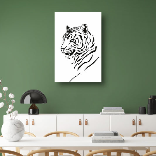 Minimalistische Zwarte Tijger Lijnenkunst canvas met baklijst