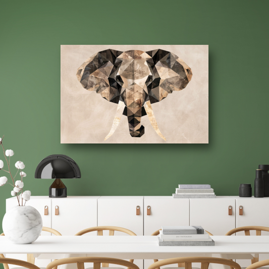 Abstracte Olifant in Geometrische Sepiatonen canvas met baklijst