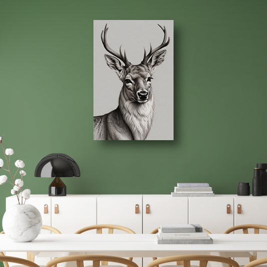 Zwart-Wit Hert met Imposant Gewei canvas met baklijst