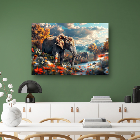 Olifanten bij de rivier canvas met baklijst