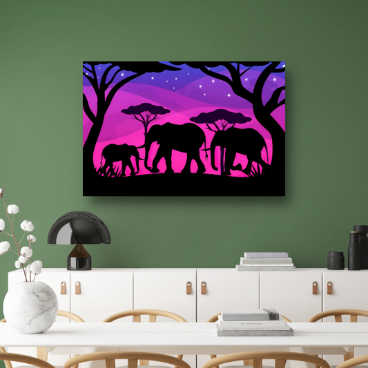 Olifant onder sterrenhemel canvas met baklijst