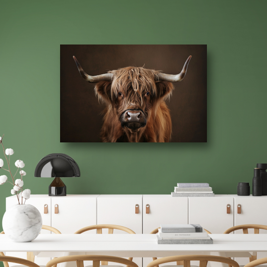 Schotse hooglander met statige blik canvas met baklijst