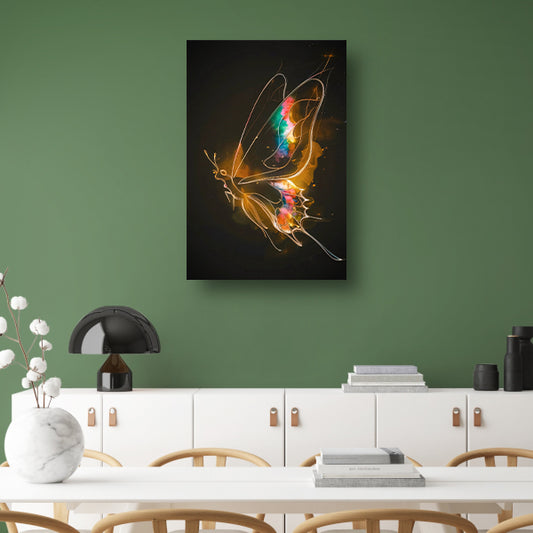 Kleurrijke Vlinder op Donkere Abstracte Achtergrond canvas met baklijst