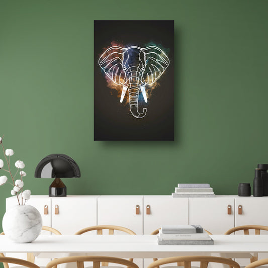 Minimalistische Olifant in Kosmische Nevel canvas met baklijst