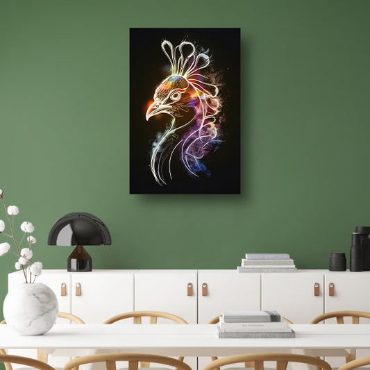 Abstracte Kosmische Vogel in Kleur canvas met baklijst