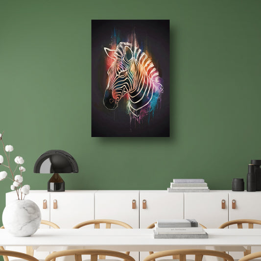 Abstracte Zebra in Kleurrijke Lichtstralen canvas met baklijst