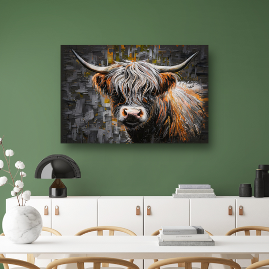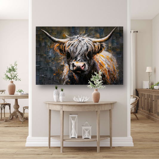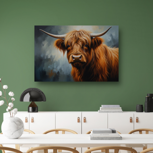 Schotse Hooglander Portret in Olieverf canvas met baklijst