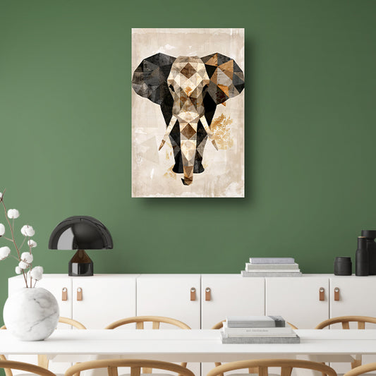 Monochrome Geometrische Olifant Kunstwerk canvas met baklijst