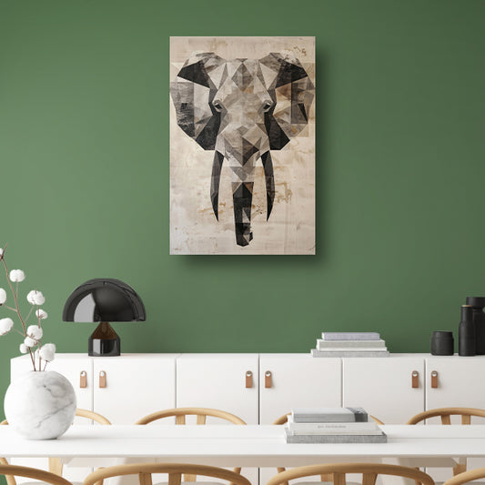 Sepia Geometrische Olifant Kunstwerk canvas met baklijst