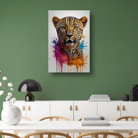 Expressief Abstract Luipaard met Kleurspat canvas met baklijst