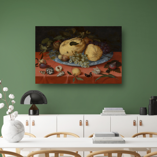 Fruitstilleven met schelpen en tulp - Balthasar van der Ast canvas met baklijst