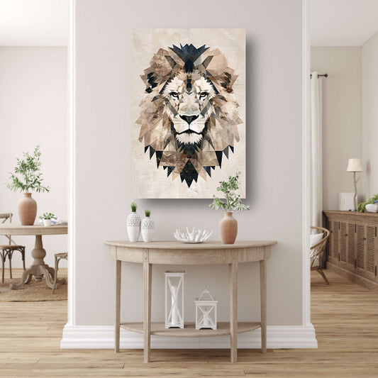 Abstracte Leeuw in Geometrische Art Deco Stijl canvas met baklijst