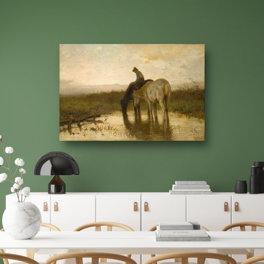 Drinkende paarden - Anton Mauve canvas met baklijst