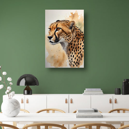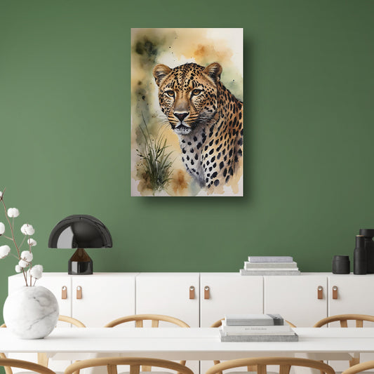 Alert Luipaard in Warme Aquarel Tinten canvas met baklijst