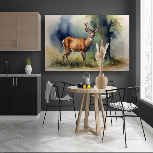 Statig Hert in Kleurrijk Boslicht canvas met baklijst