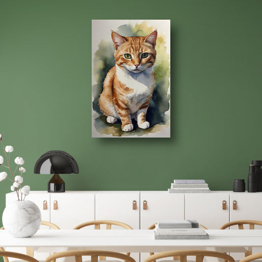 Serene aquarel van een bedachtzame kat canvas met baklijst