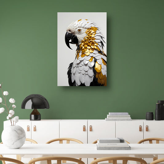 Majestueuze Papegaai in Goud en Wit canvas met baklijst