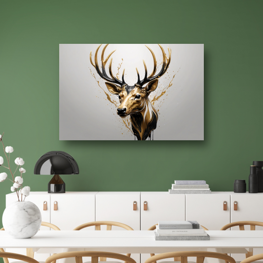 Gouden Hertenhoofd met Dynamische Spatten canvas met baklijst