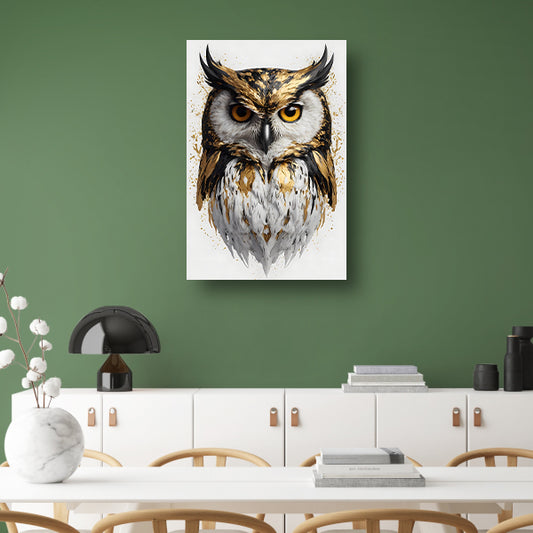 Majestueuze Gouden Uil op Wit canvas met baklijst