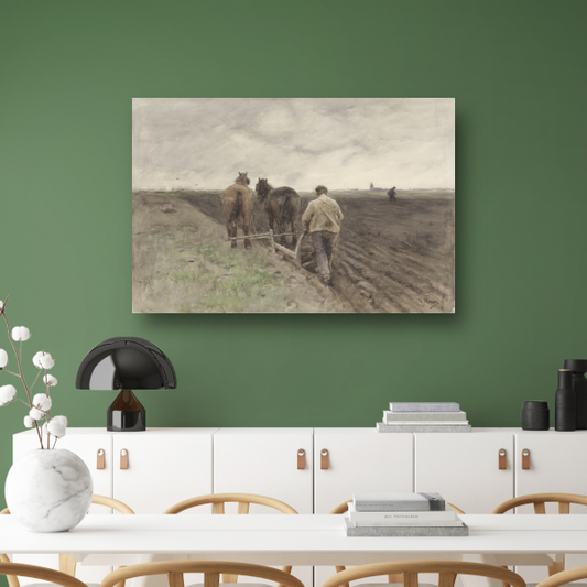 Ploegende boer - Anton Mauve canvas met baklijst