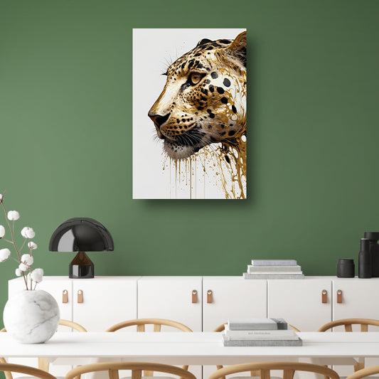Vergulde Luipaard in Dynamische Kunst canvas met baklijst