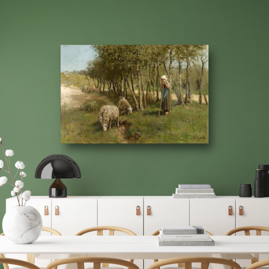 Herderin met kudde schapen - Anton Mauve canvas met baklijst