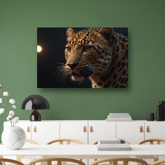 Gouden schemerlicht over luipaardportret canvas met baklijst