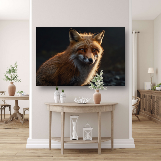 Een vos bij avondlicht in close-up canvas met baklijst